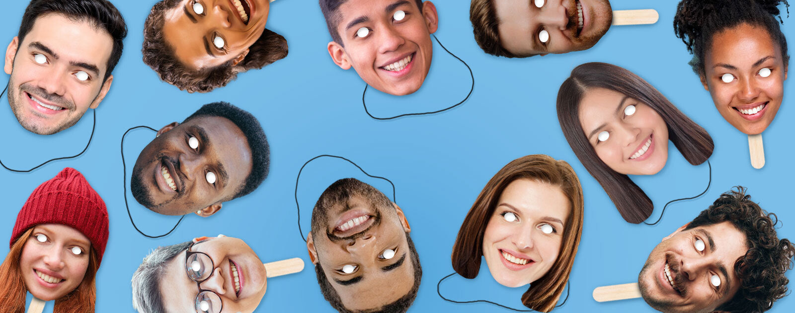 Personalised face masks are cardboard cut-outs of someone's face. They are supplied with elastic or sticks so you can wear or hold them up for a fun night out, birthday party, hen/stag or even graduation! All you have to do is upload your chosen image and we'll cut out the face and print the masks for you.